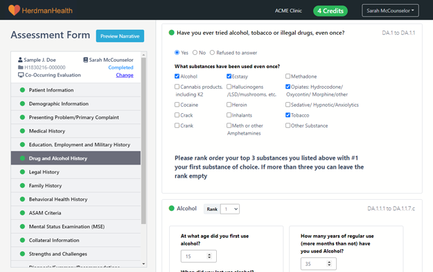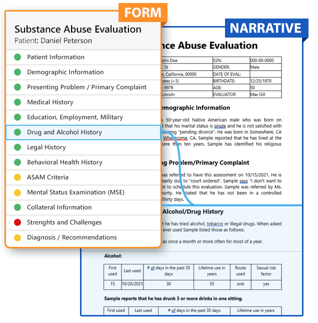 Take advantage of pre-made behavioral health assessment forms that generate professional narratives.