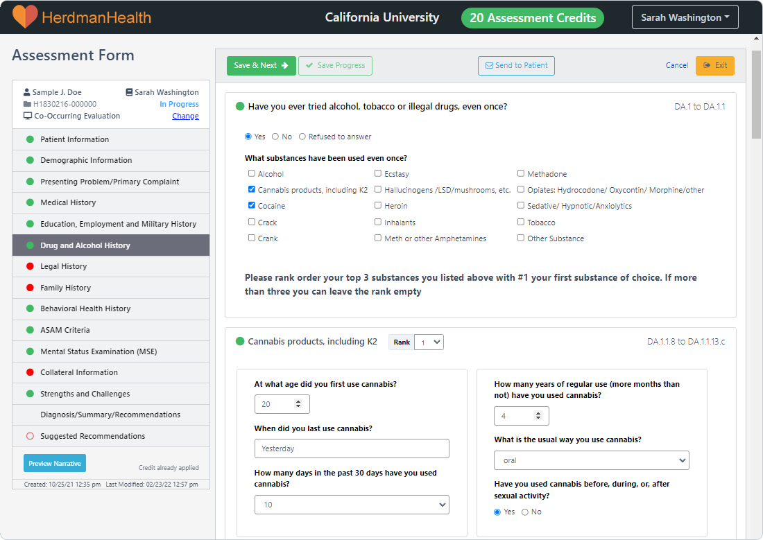 Drug and Alcohol History